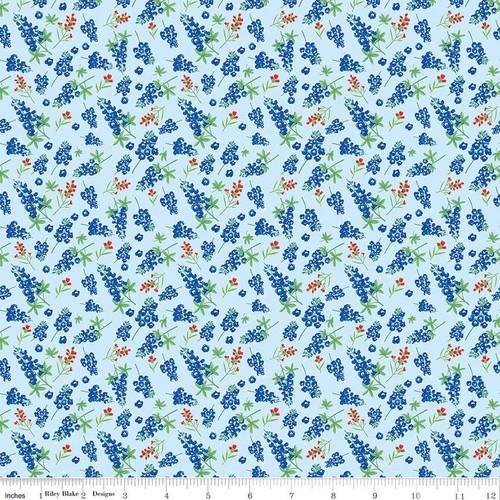 Bring a touch of wildflower charm to your next quilting or sewing project with Friendship Florals Bluebonnets Sky by Riley Blake Designs. This delightful print features clusters of blooming bluebonnets scattered across a soft sky-blue background, creating a fresh, airy, spring-inspired aesthetic.